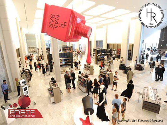 With more than 130,000 square-feet over two storeys carrying high-end brands including Tiffany, Gucci, Prada, Miu Miu, Valentino, Hugo Boss, Stella McCartney, Jimmy Choo and many others, Holt Renfrew needed an impressively sized yet lightweight point of sale display piece to direct clients into their new Nail Bar. As Forte EPS's Dominic Zita put's it "If you can Imagine it, We can Create It!"